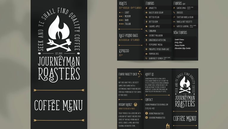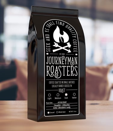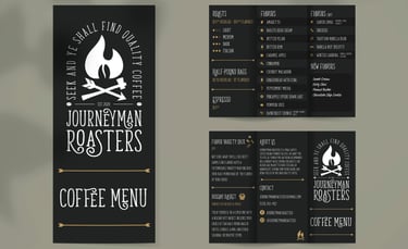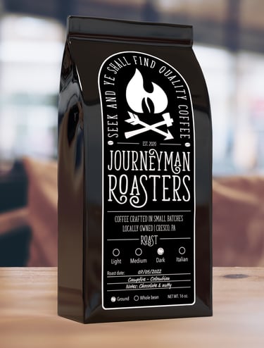 Journeyman Roasters is a small-batch coffee brand founded in 2020 that aims to offer customers a sense of adventure with each sip. The branding evokes a sense of wanderlust, ambition, and inspiration that is fueled by their unique roasts. The logo consists of three recognizable symbols, combined to create something more compelling. It represents the coffee bean being roasted over a campfire, and calls forth the familiar feeling of embarking on a journey.