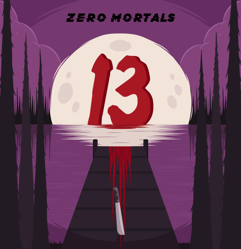 Zero Mortals released their single "13" in October 2020. The song and lyrics are based on the popular horror movie "Friday the 13th." I included visual elements from the movie in the song's artwork.