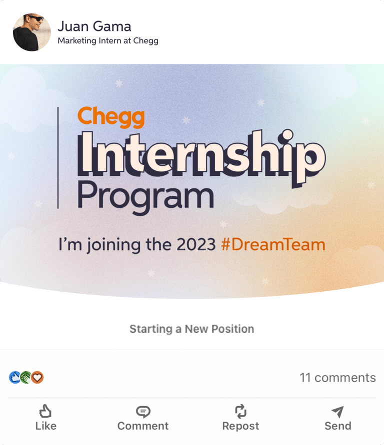 Chegg has a highly-rated internship program that the employees look forward to each year! It offers students a chance to be a valued part of a team, networking opportunities with leadership, and special intern events throughout the summer. In 2023 I designed a logo and branding for the program. The theme of the campaign was #DreamTeam, which was reflected by the dreamy colors and imagery throughout.